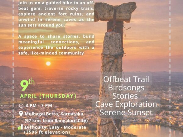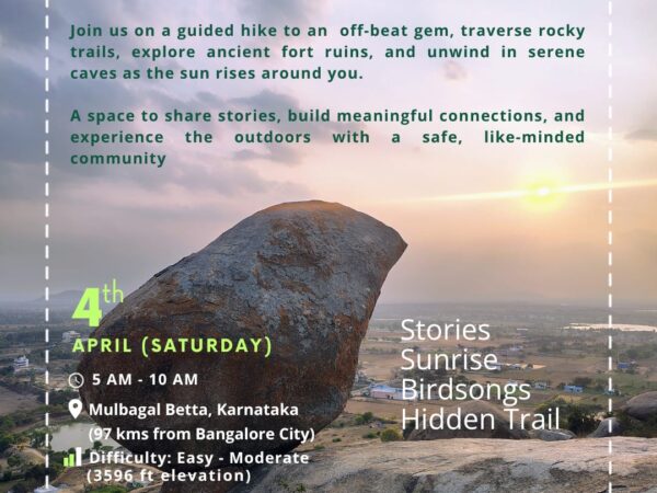 Guided day hikes and short getaways around Bengaluru that blend movement, silence, storytelling, and mindful pauses.